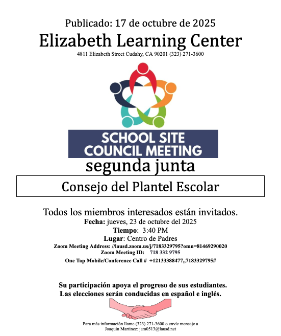School Site Council Meeting / Consejo del Sitio Escolar Reunión Attached Files SSC 25-26 2nd Meeting Agenda.pdf