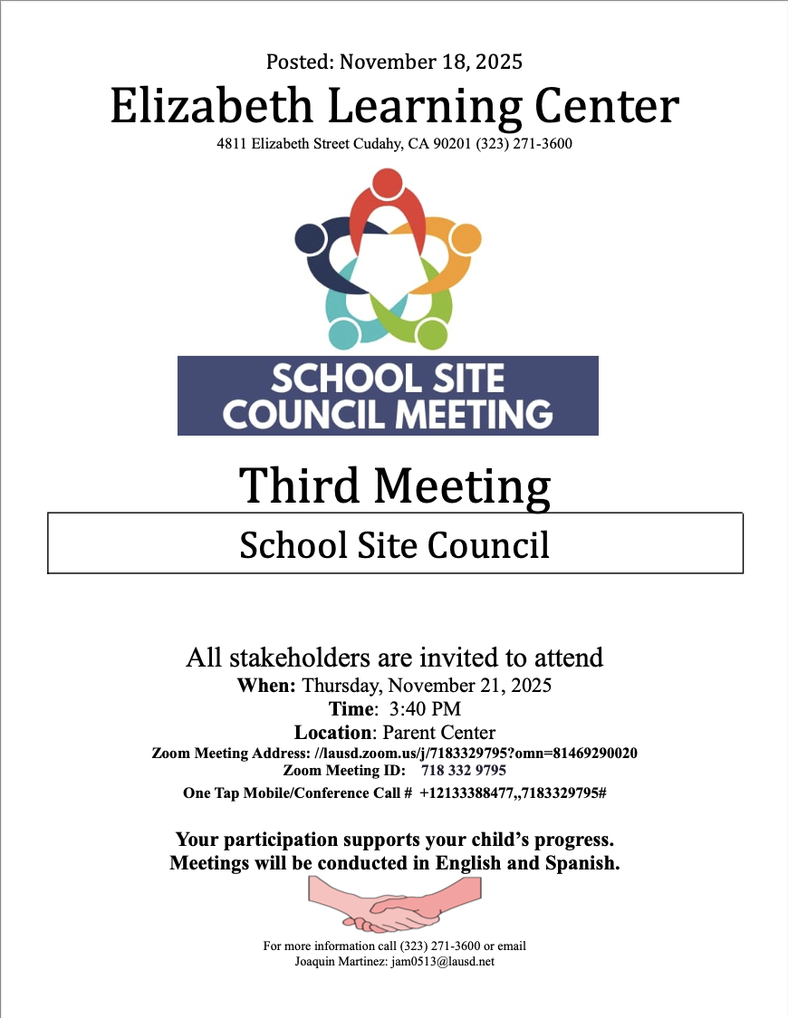 School Site Council Meeting / Consejo del Sitio Escolar Reunión Attached Files SSC 25-26 3rd Meeting Agenda.pdf